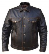 Mens Distressed Brown Leather Motorcycle Shirt MLSJ53