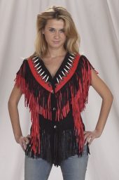 Womens Short Fringe, Braid Leather Vest WLSV16