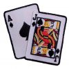 This cool looking biker patch is top quality made. Features an ace and Jack Blackjack 21 playing cards hand. Can be sewn or ironed on. Great for leather or textile jackets, vest, hats, caps, whatever you can think of. Measures 2.5 inches wide by 3 inches high. A very cool looking patch.