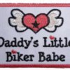 This cool looking kids biker patch is top quality made. Features a heart with wings and “Daddys Little Biker Babe” saying. Can be sewn or ironed on. Great for leather or textile jackets, vest, hats, caps, whatever you can think of. Measures 3 inches wide by 2 inches high. A cute kids biker patch for a vest or jacket