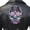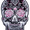 This sexy looking lady biker patch is top quality made. Features a white, silver, black and pink day of the dead sugar skull with pink roses and other cool details. Can be sewn or ironed on. Great for leather or textile jackets, vest, hats, caps, whatever you can think of. I have this in two sizes: