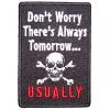 This cool looking biker patch is top quality made. Features the saying “Don’t Worry There’s Always Tomorrow ” with a skull and crossed bones. Lovely in detail. Can be sewn or ironed on. Great for leather or textile jackets, vest, hats, caps, whatever you can think of. Measures 2.25 inches wide by 3.25 inches high. A great looking biker patch.