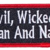This sexy looking ladies biker patch is top quality made. Features “Evil, Wicked, Mean And Nasty” in white letters with red border. Can be sewn or ironed on. Great for leather or textile jackets, vest, hats, caps, whatever you can think of. Measures 3.5 inches wide by 1.5 inches high. A very cool patch.