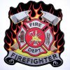 This patch features flames with fire axes, Maltese cross and “FIREFIGHTER” on bottom silver banner. It is a great patch with lots of detail. Can be sewn or ironed on. I have this in two sizes: