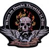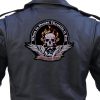 I’m happy and proud to be able to offer this great looking and unique biker patch. It features vibrant red, orange and yellow flames around a skull and teeth with wings underneath. Has the words “When in Doubt Throttle it Out” and “Go Hog Wild” in brown and silver letters. Can be sewn or ironed on. I have this in two sizes: