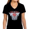 This ladies high quality brand name black T-shirt is very colorful and unique! It is a ladies thick and soft 100% ring spun cotton and preshrunk Crew-neck or V-neck style t-shirt, your choice.