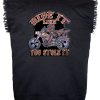 This high quality denim shirt has a button up front, classic collar and two button chest pockets. It is a black colored twill denim shirt. The sleeves are cutoff leaving the frayed ends hanging out in classic biker style. Every biker will enjoy wearing this while riding!!!