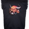 This black denim shirt features a reddish-brown angry bull with big horns and spike collar. The patch itself measures 11.5 inches wide by 11.5 inches high. So choose your style and get one or several now, free shipping in the USA!!!
