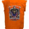 Men’s I Will Give Up My Guns Skeleton Orange Cutoff Denim Biker Shirt