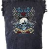 Be the first to review “Men’s Immortalized Skull With Wings And Roses Acid Washed Cutoff Denim Biker Shirt”