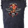 Men’s Knucklehead Motorcycle Sexy Girl Acid Washed Cutoff Denim Biker Shirt