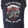 Be the first to review “Men’s Live To Ride Ride To Live Get N Lucky Cards Acid Washed Cutoff Denim Biker Shirt”