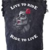Men’s Live To Ride Ride To Live Gothic Girl Acid Washed Cutoff Denim Biker Shirt