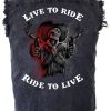 Men’s Live To Ride Ride To Live Gunslinger Skeleton Cowboy Acid Washed Cutoff Denim Biker Shirt
