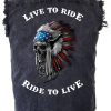 Be the first to review “Men’s Live To Ride Ride To Live Patriotic Indian Skull Headdress Acid Washed Cutoff Denim Biker Shirt”