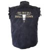 Men’s Try That In A Small Town Longhorn Steer Acid Washed Charcoal Denim Biker Shirt