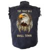 Men’s Try That In A Small Town Native American Eagle Charcoal Denim Biker Shirt
