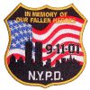 This cool looking biker patch is top quality made. It features a patriotic USA flag, 9-11-01 date, IN MEMORY OF OUR FALLEN HEROES at the top and NYPD at the bottom badge with yellow border. Can be sewn or ironed on. Measures 3 inches wide by 3 inches high.