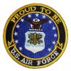 This patriotic biker patch is top quality made. It features the U.S. Air Force logo in the center, Proud To Be U.S. Air Force around it on a round patch. Can be sewn or ironed on. Great for leather or textile jackets, vest, hats, caps, whatever you can think of. Measures 3 inches wide by 3 inches high.
