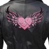 This sexy looking lady biker patch is top quality made. Features a pink heart in the center with a tribal design on it and pink flames around it. Can be sewn or ironed on. I have this in two sizes: