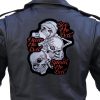 I’m happy and proud to be able to offer this great looking and unique biker patch. It features 3 skulls with their hands covering their eyes, ears or mouth, has the words ” See No Evil, Hear No Evil and Speak No Evil,” in a vibrant orange color. Fabulous details and lots of color, on a black patch. Can be sewn or ironed on. I have this in two sizes: