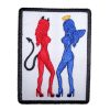 This cool looking biker patch is top quality made. Features two sexy ladies, one as a devil in red and one as an angel in blue. Lovely in detail. Can be sewn or ironed on. Great for leather or textile jackets, vest, hats, caps, whatever you can think of. Measures 2.25 inches wide by 2.75 inches high. A great looking biker patch.