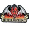 This biker patch is top quality made. It features a picture of the Devil in flames smoking a cigar with “THE DEVIL MADE ME DO IT” at the bottom. Can be sewn or ironed on. Measures 5 inches wide by 2.75 inches high.
