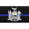 This patch features the New York state flag logo and thin blue line police officer design. Can be sewn or ironed on. Measures 4 inches wide by 2 inches high.