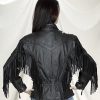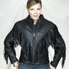 This is one of our classic ladies top grain leather jackets with braid and fringe. Long list of features are:
