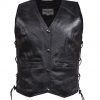 This is one of our classic top grain cowhide ladies black short leather vest with laces. Long list of features are: