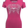 Women’s Stretchy Fitted Skull Back Cutout Shoulder-less Asphalt Angel Biker T-shirt