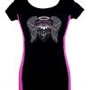 Women’s Stretchy Fitted Slim Fit Two Tone Asphalt Angel Wings Scoop Neck Tee Shirt Black/Pink
