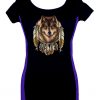 Be the first to review “Women’s Stretchy Fitted Slim Fit Two Tone Dreamcatcher Wolf Scoop Neck Tee Shirt Black/Purple”