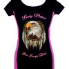 Women’s Stretchy Fitted Slim Fit Two Tone Lady Biker Eagle Dreamcatcher Live Laugh Ride Scoop Neck Tee Shirt Black/Pink