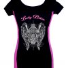 Be the first to review “Women’s Stretchy Fitted Slim Fit Two Tone Lady Biker Gothic Cross Scoop Neck Tee Shirt Black/Pink”