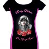 Be the first to review “Women’s Stretchy Fitted Slim Fit Two Tone Lady Biker Marilyn Monroe Red Roses Live Laugh Ride Scoop Neck Tee Shirt Black/Pink”