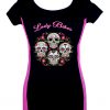 Be the first to review “Women’s Stretchy Fitted Slim Fit Two Tone Lady Biker Sugar Skulls Scoop Neck Tee Shirt Black/Pink”