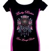 Be the first to review “Women’s Stretchy Fitted Slim Fit Two Tone Lady Rider Floral Dreamcatcher Live Laugh Ride Scoop Neck Tee Shirt Black/Pink”