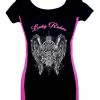 Be the first to review “Women’s Stretchy Fitted Slim Fit Two Tone Lady Rider Gothic Cross Scoop Neck Tee Shirt Black/Pink”