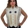 This is one of our classic ladies white leather vest with fringe and beads. Long list of features are: